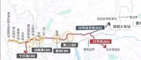 因此,综合已知的规划信息来看,28号线将串联佛山东平CBD、广州白鹅潭CBD、琶洲电子商务区、第二中央商务区、新塘东部商务区、松山湖高新区以及东莞万江商务区等未来城市最具活力和发展的区域。