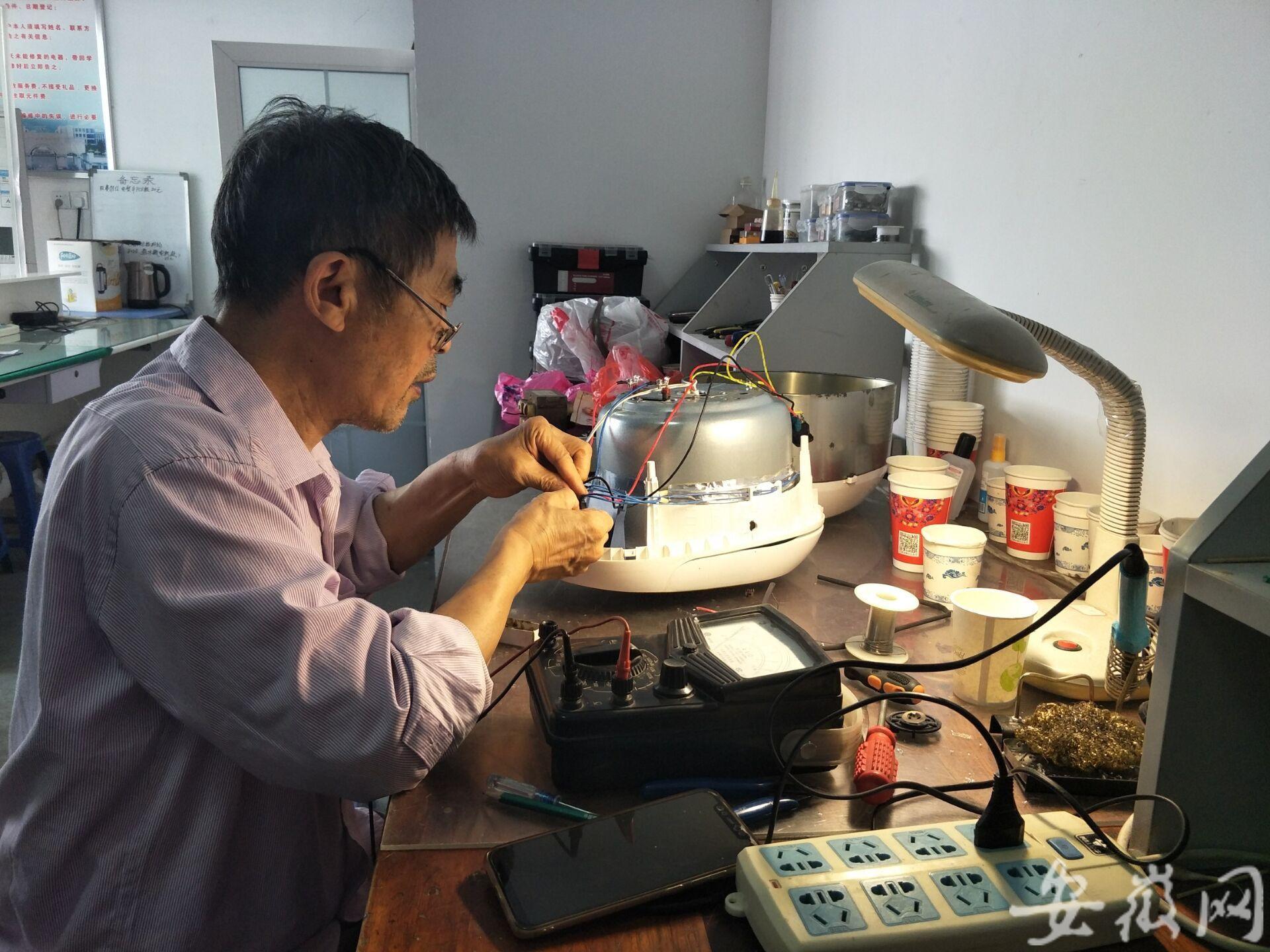 安徽网 大皖客户端讯 今年75岁的姚文正是中国人民解放军陆军炮兵防空兵学院(下文简称“炮院”)的退休教员,他生活简朴,却把省下来的钱资助困难学生,帮助贫病群众,几十年来坚持义务为群众维修家电(详见新安晚报2019年4月26日报道)。如今一年多过去了,他的近况如何呢?这是很多读者和知晓姚文正的群众所关心的。9月23日上午,新安晚报、安徽网、大皖客户端记者前往“炮院”设立在合肥东至路上家电维修站进行回访得知,从今年3月23日到昨日9月23日半年时间,他又为群众义务修了530多件电器。