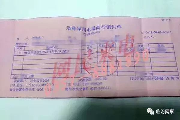 近日,有网友反映,其于2018年6月,在临汾五交化迅林家用电器商行购买了一台挂式空调机,一年来,实际使用仅十几次,2019年7月20日,发现空调室内机的出风口严重漏水,一晚上滴答滴答不停。