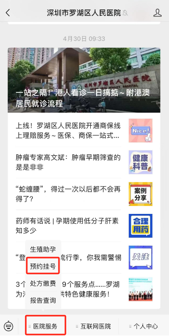 预约第一步:关注公众号患者可先关注“深圳市罗湖区人民医院”微信公众号。