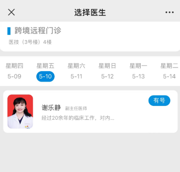 预约第二步:找到跨境远程门诊 点击医院服务→预约挂号→罗湖区人民医院→名医中心→跨境远程门诊。挂谢乐静医生号。