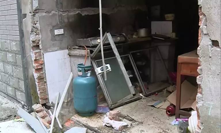 我当时还躺在床上,炸起来的时候还不知道,后来等我走出来,全部炸的乱七八糟了。刚开始还以为是地震,后来才知道是煤气罐炸起来。这些房子全部被炸的乱七八糟,两边前后玻璃全没了,对面这个房子从下到上玻璃全部碎完了。