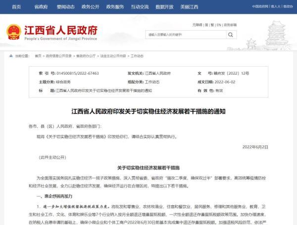 为全面落实国务院扎实稳住经济一揽子政策措施,深入贯彻省委、省政府“强攻二季度、确保双过半”部署要求,高效统筹疫情防控和经济社会发展,全力以赴稳住经济发展,确保经济运行在合理区间,今天(2日)下午,江西省政府正式印发实施《关于切实稳住经济发展若干措施》(以下简称《若干措施》)。