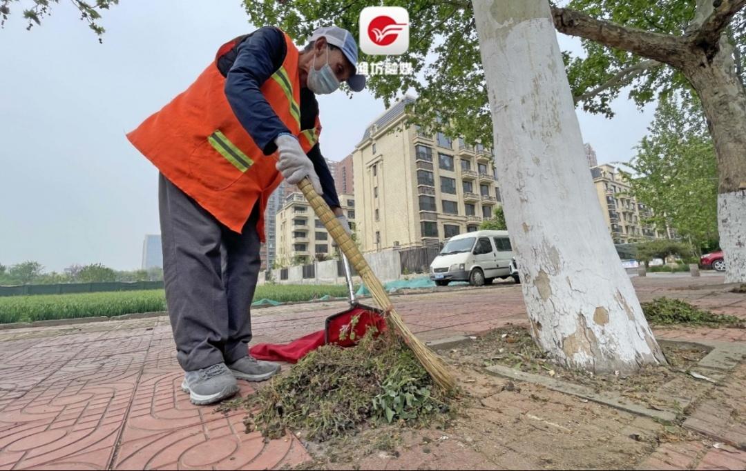 在城区卧龙东街,环卫工杜学升正在清洁卫生。