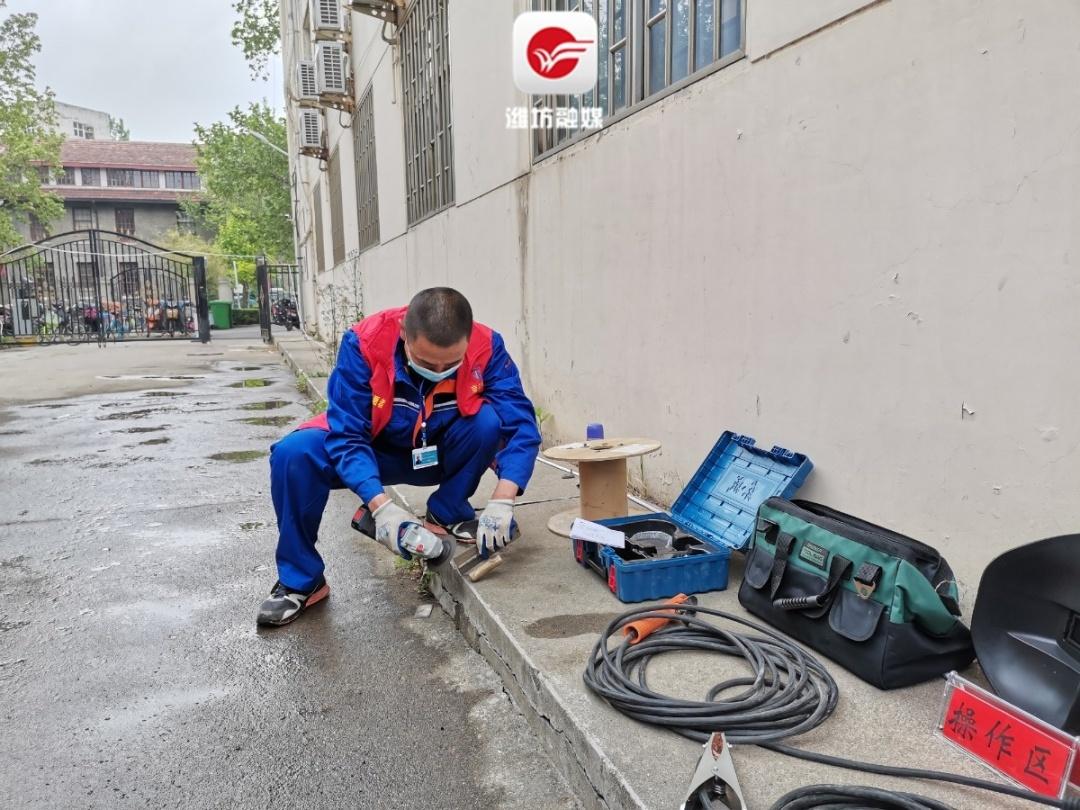 奎文区广文街道乐道院社区志愿服务队的师傅正在帮居民维修家用电器。潍坊日报社全媒体记者 刘晓杰 摄