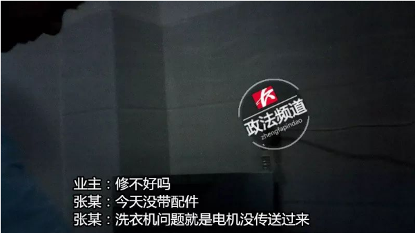 经过检查,张某告诉记者,这台洗衣机滚筒无法正常转动的原因是由于皮带断裂,但是一转身,他便换了一种说法来应对客户。