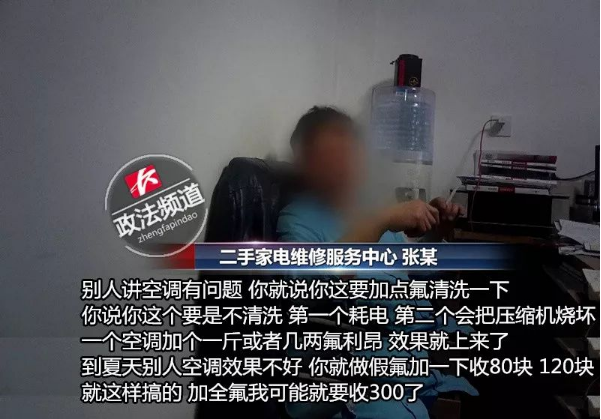 张某说,除了做足“表面功夫”,营销手段也非常重要。夏天空调效果不好的原因大部分是空调氟利昂不足,而氟利昂一公斤的进价只需要20多元,给空调加氟的利润非常可观,甚至可以在加氟时玩一些套路。
