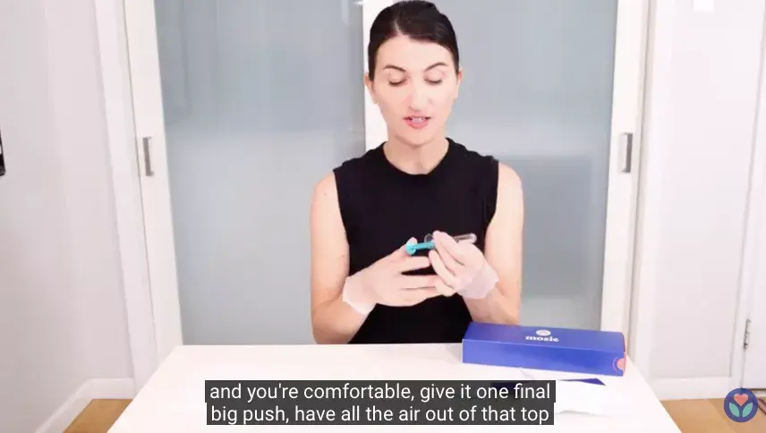 调整好针筒的推棒位置,将精液尽量挤到靠近出口的位置。