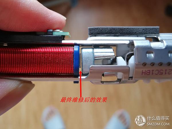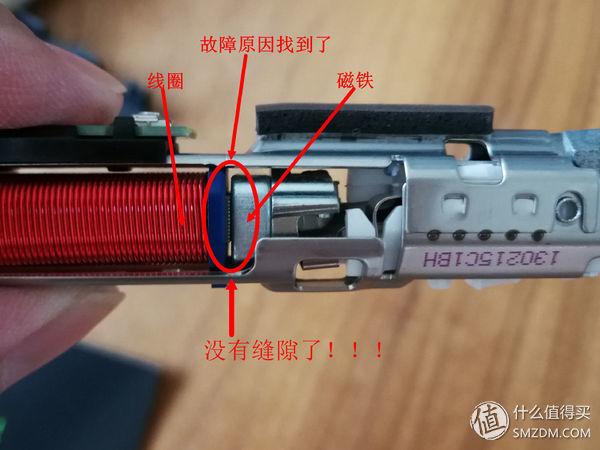▼见下图,可见磁铁和线圈已经完全吸到一起了,看来故障原因找到了。还好是小毛病,好修好修!!!