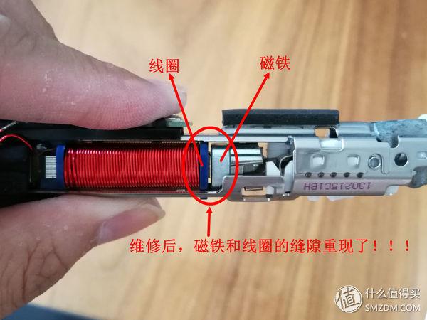 既然故障原因是磁铁和线圈已经完全吸到一起了,因此只需要将其分开,重新固定住就OK了