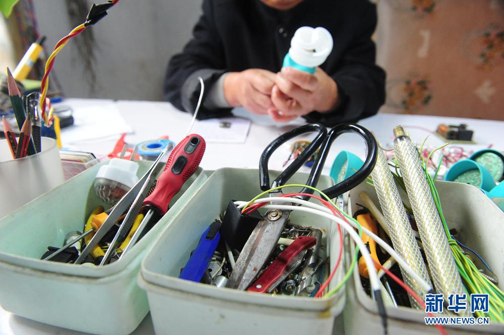 退休后,陈怀银不甘闲下来,开始专心研究发明创造。他拿出自己的积蓄,添置设备,全身心地投入发明。多年来,已发明了多项产品,其中“负离子空气净化灯”、“盆景式电子空气净化器”等4项发明获得国家专利,实现“老有所乐”,成为当地远近闻名的民间“发明达人”。(王彪 文/摄)