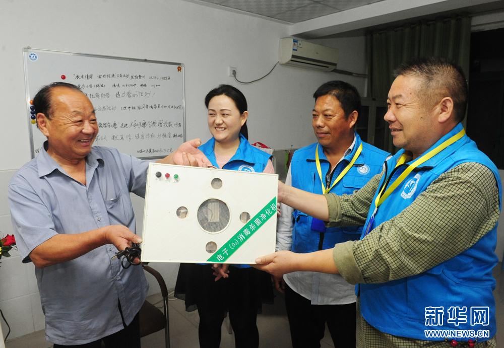 9月24日,陈怀银老人将一台发明的电子消毒杀菌净化机赠送给当地“心连心”志愿者协会。