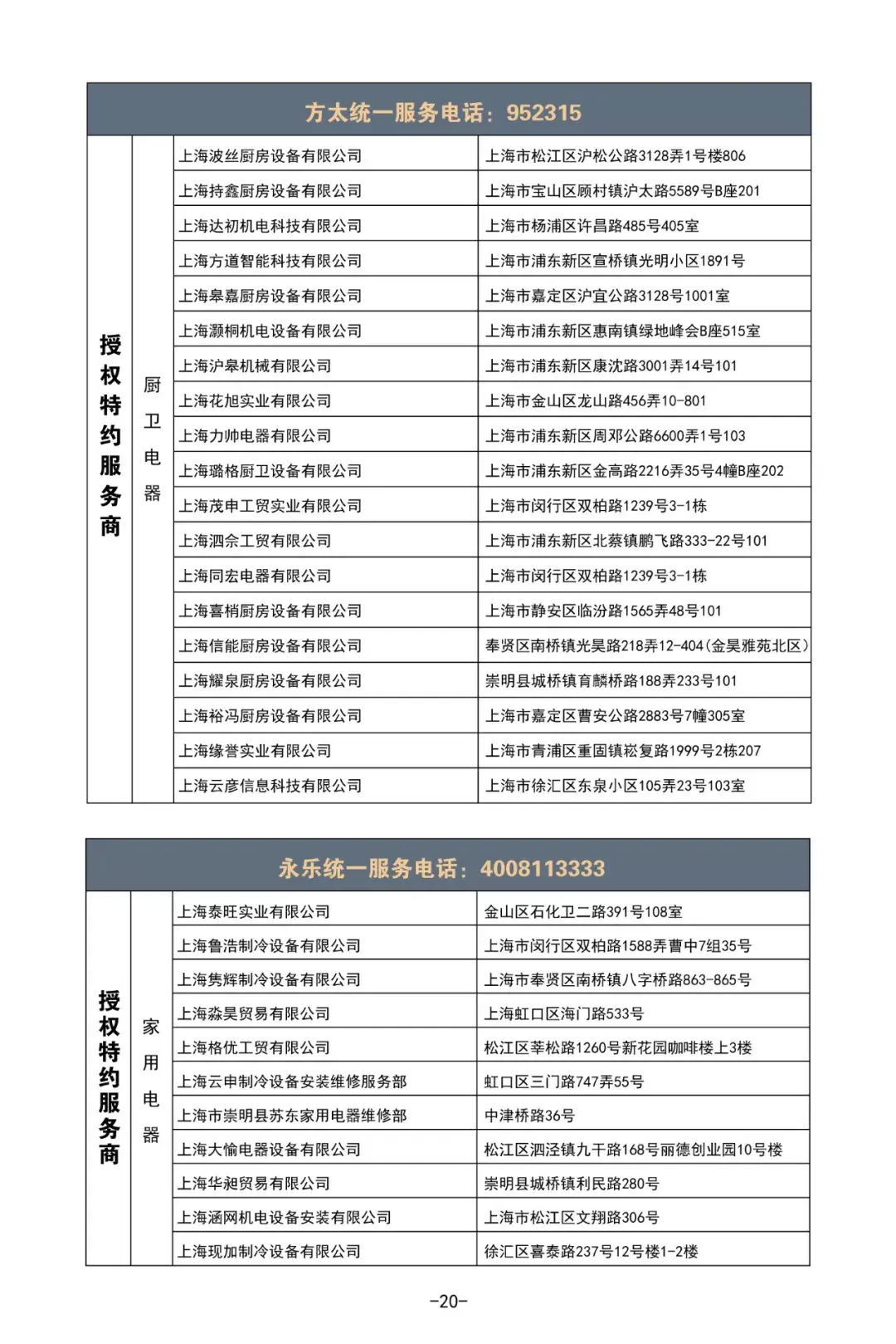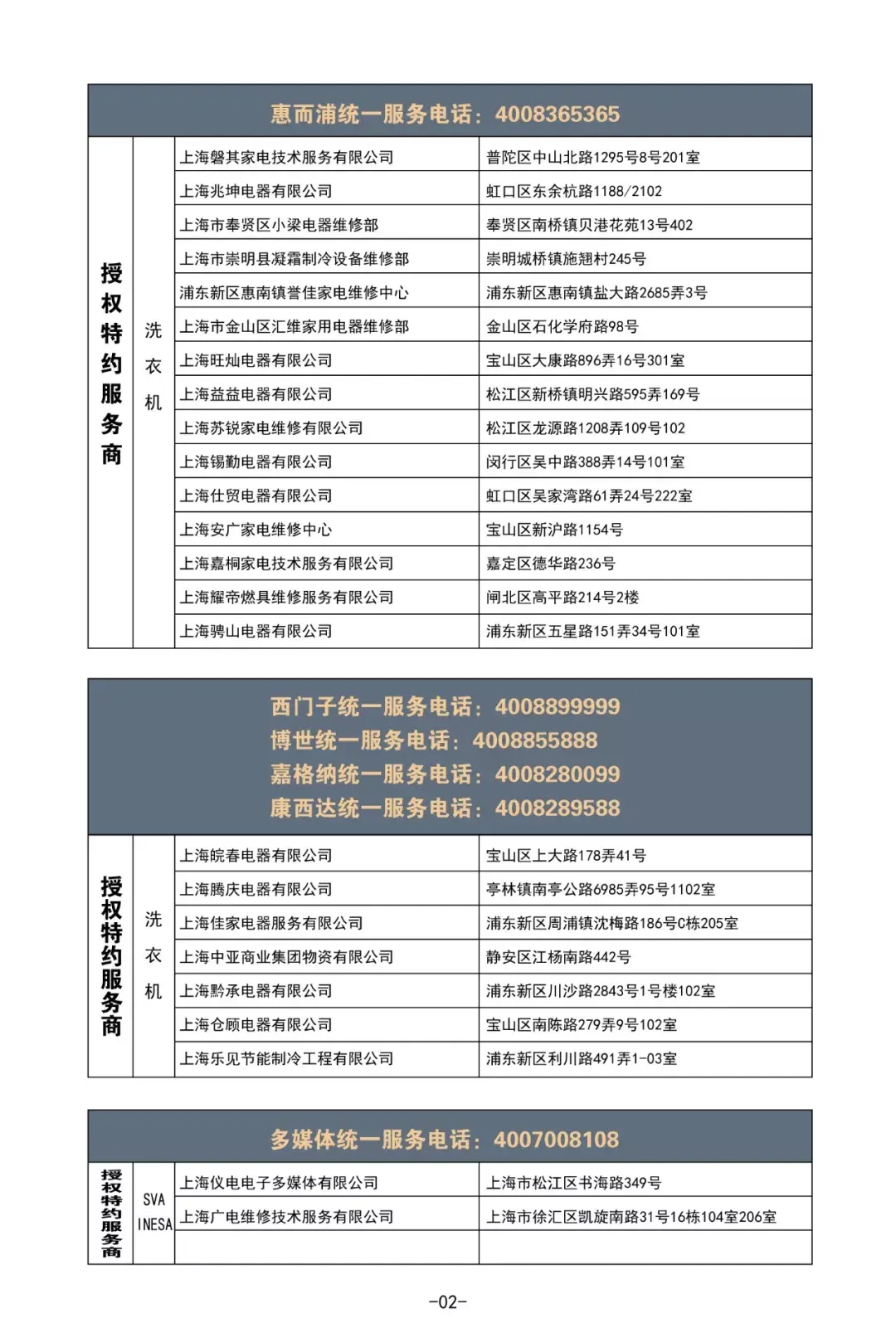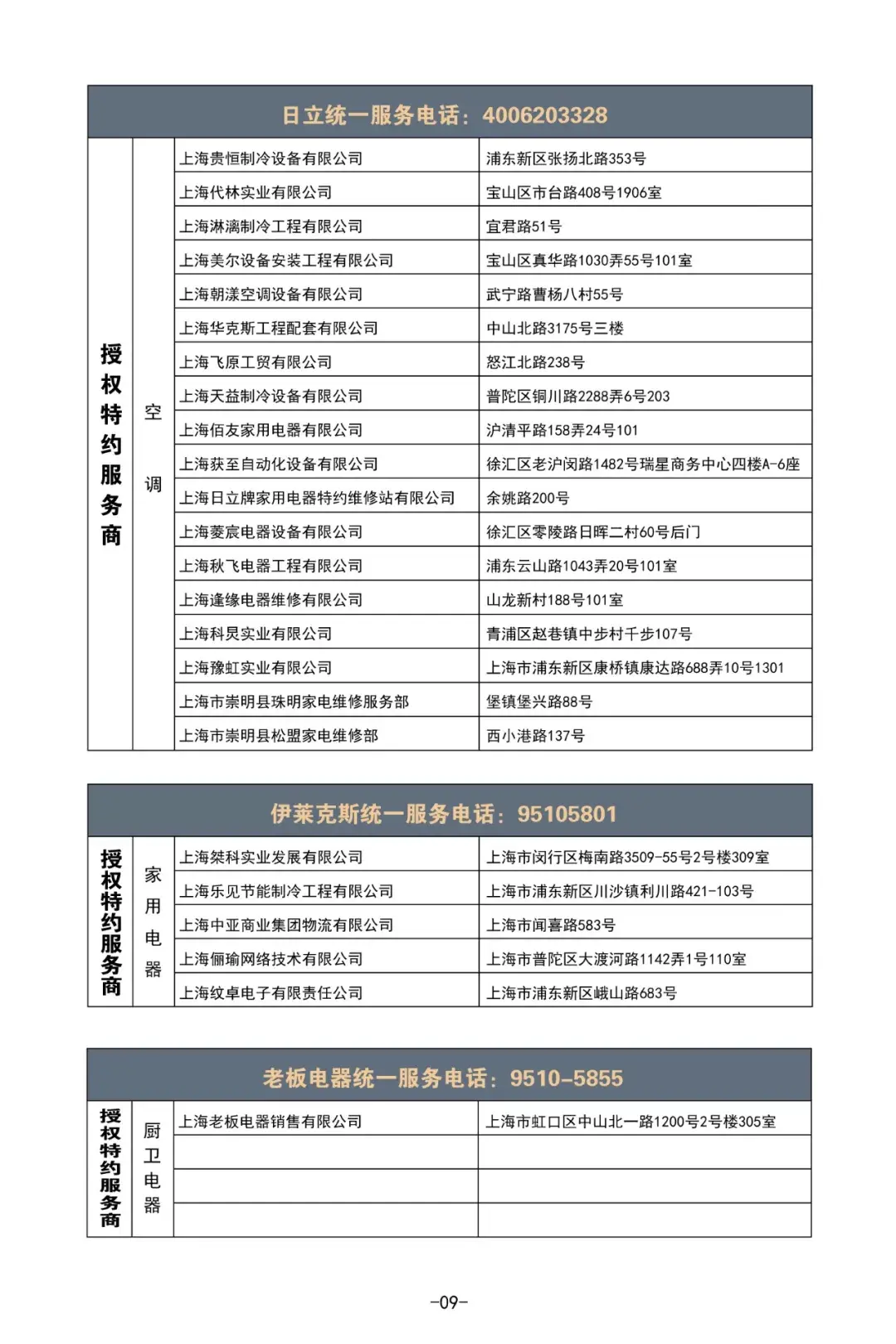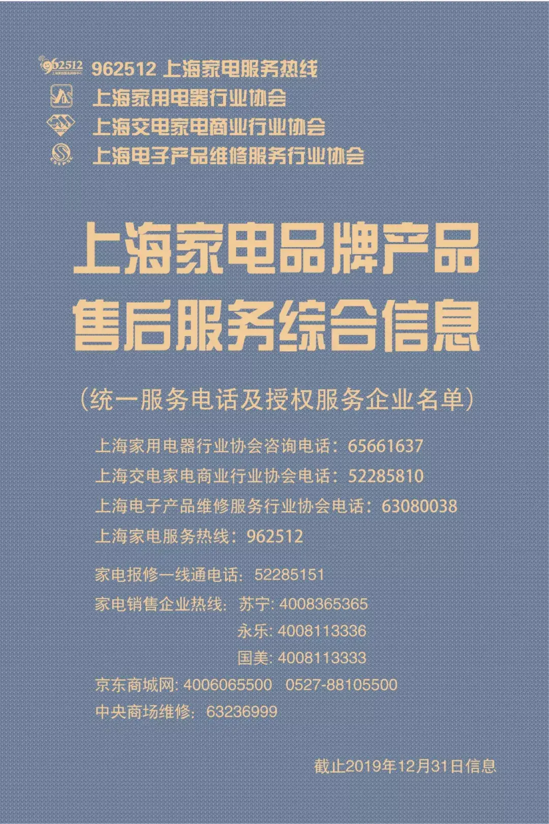 2020年品牌家电企业售后维修服务热线及授权维修服务网点名单