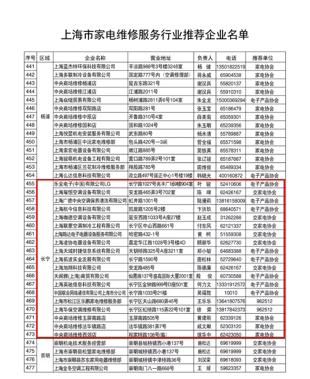 家用电器“罢工”,路边维修游击队不靠谱怎么办?近日,市商务委公布2020年品牌家电企业售后维修服务热线及授权维修服务网点名单。小编为大家找出了位于长宁的“正规军”,有需要的小伙伴可以往下看~