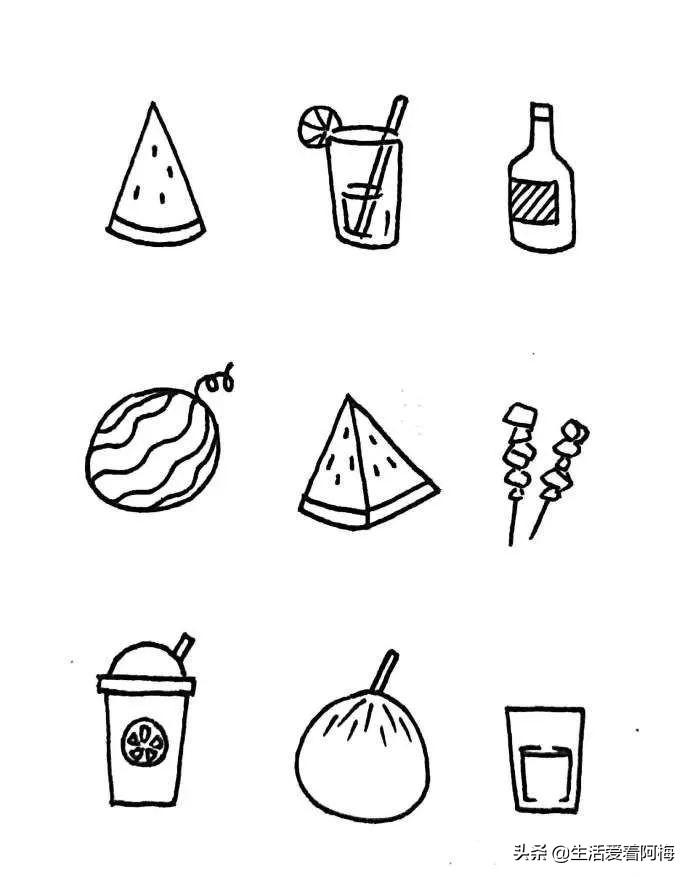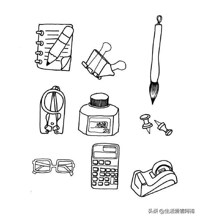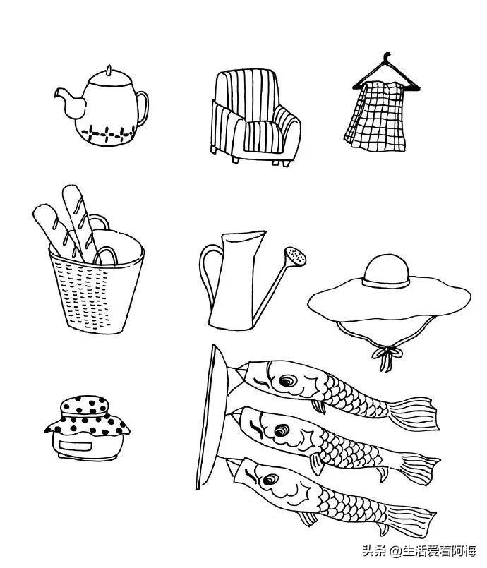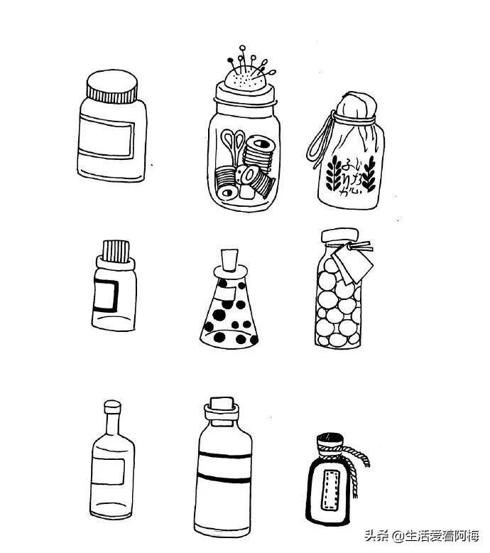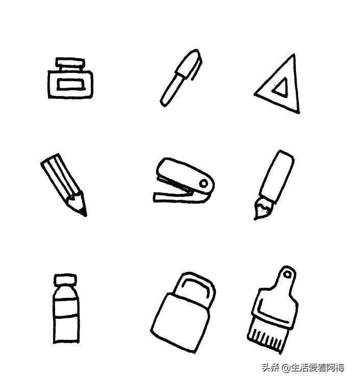 各类日用品的简笔画,简单有趣,可以留着教孩子画,手帐必备素材