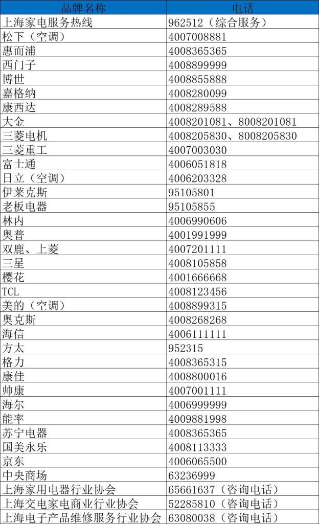 3.维修前,注意核对上门服务人员身份信息,明确具体收费项目及服务标准;维修后,及时索取单据和正规发票。上海主要家电品牌维修服务常用信息