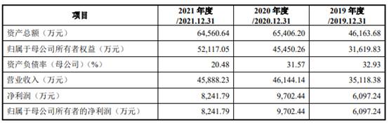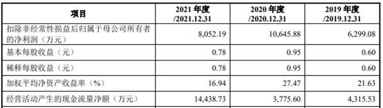 招股书显示,2019年至2021年,未来电器实现营业收入分别为35,118.38万元、46,144.14万元、45,888.23万元;实现净利润(归属于母公司所有者的净利润)分别为6,097.24万元、9,702.44万元、8,241.79万元;扣除非经常性损益后归属于母公司所有者的净利润分别为6,299.08万元、10,645.88万元、8,052.19万元。