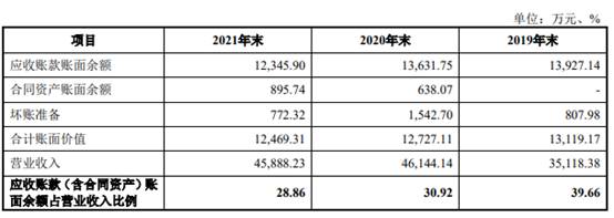 2019年至2021年,公司应收账款周转率(次/年)分别为2.64、3.27、3.34,低于同行业可比公司均值5.76、4.91、4.32。