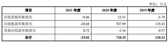2019年和2020年,未来电器信用减值损失分别为130.22万元及728.35万元。2020年较2019年显著增加的原因系公司对南京日新731.52万元及惠州中城86.00万元应收账款预计无法收回,公司对其进行单项全额计提坏账准备。