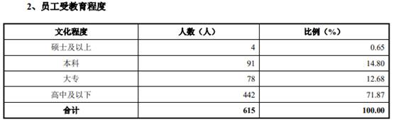 此外,在员工受教育程度方面,未来电器仅4人学历为硕士及以上,其中还包括了控股股东莫文艺、楼洋夫妇,二人均为工商管理硕士研究生学历。