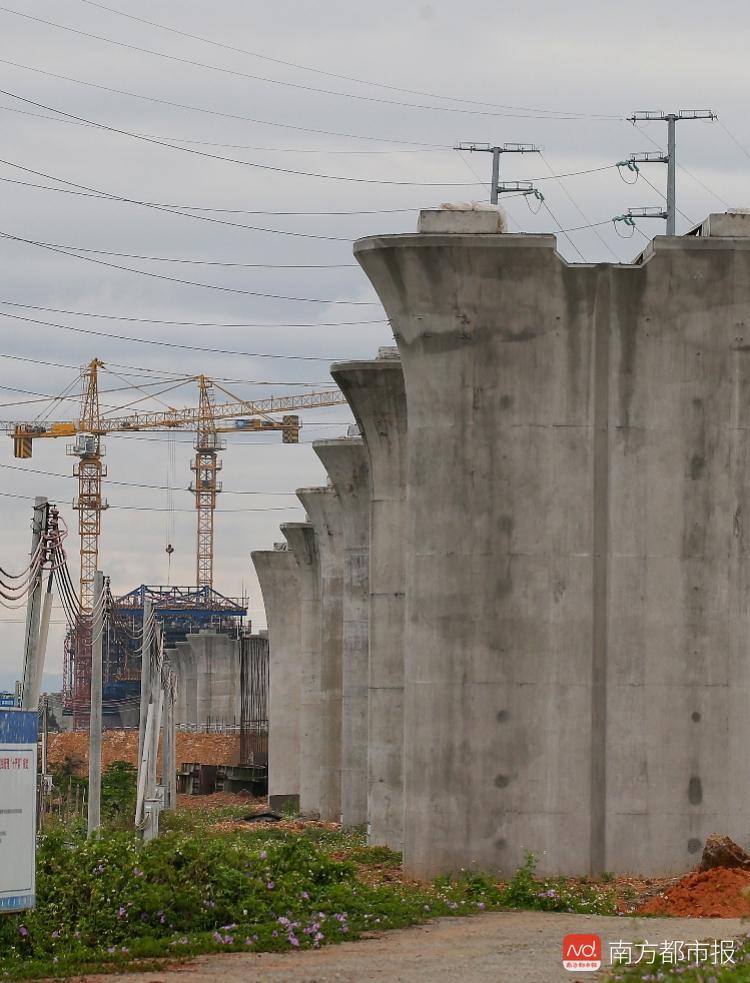 广汕高铁惠州段跨永石大道特大桥196个桥墩,目前已经完工166个,预计年内可以做完所有的桥墩工程。