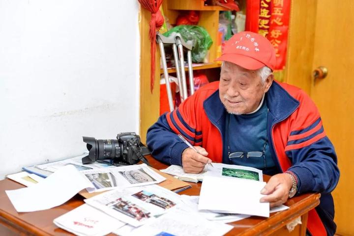 楼伯余正在整理照片,撰写文字说明。通讯员 谭云俸 摄于2016年