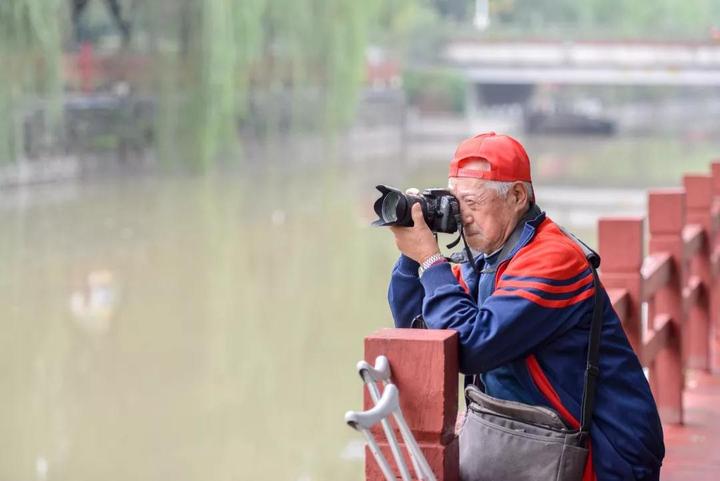 楼伯余在护城河边“挑刺”。通讯员 谭云俸 摄于2016年