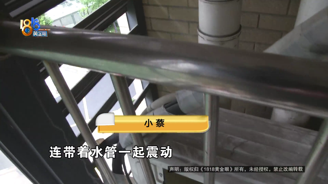 小蔡 :这台是我的,这个是我们隔壁一号房的这个空调外机 ,它那个一到夏天,我们那个隔壁的小姐姐,就是人在家就开空调,震动起来就是,连带着水管一起震动, 这个是噪音特别地大。
