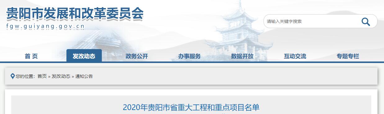 4月27日,贵阳市发展改革委官网公布《2020年贵阳市省重大工程和重点项目名单》具体如下: