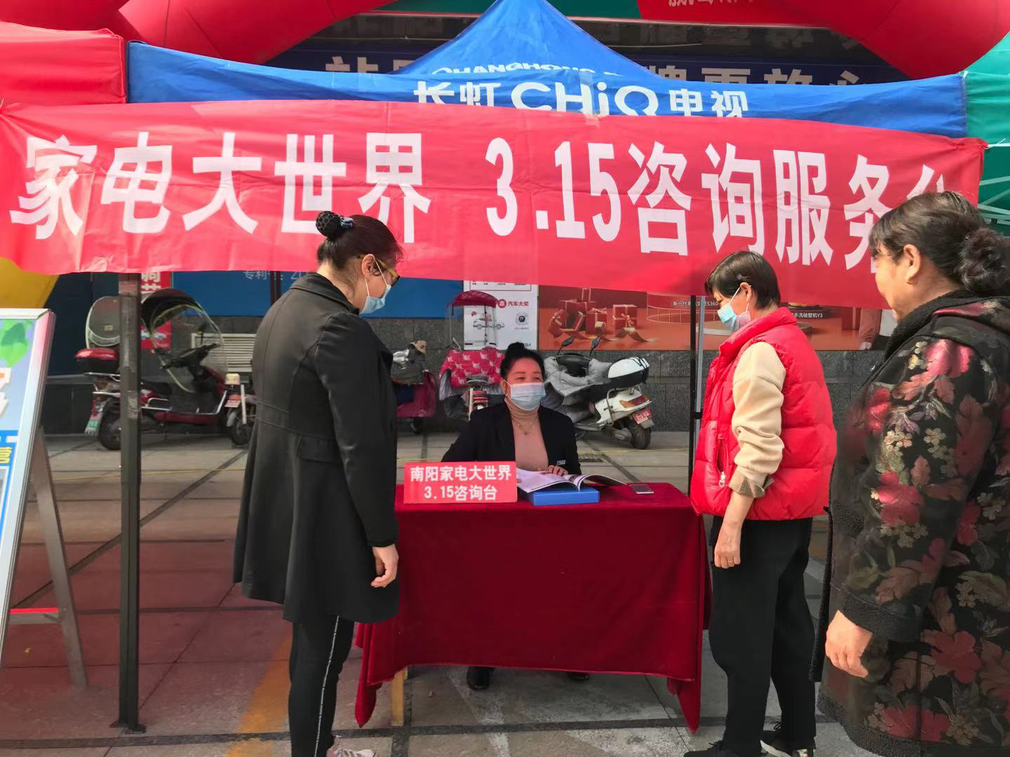 今天是3月15日,南阳家电大世界在广场设立咨询服务台,提供免费咨询、免费维修小家电、免费清洗等活动。