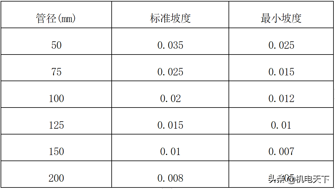 排水立管上在最底层和最高层必须设置检查口,检查口中心距该层地面1米,检查口的朝向要便于维修。排水管的坡度要符合以下要求: