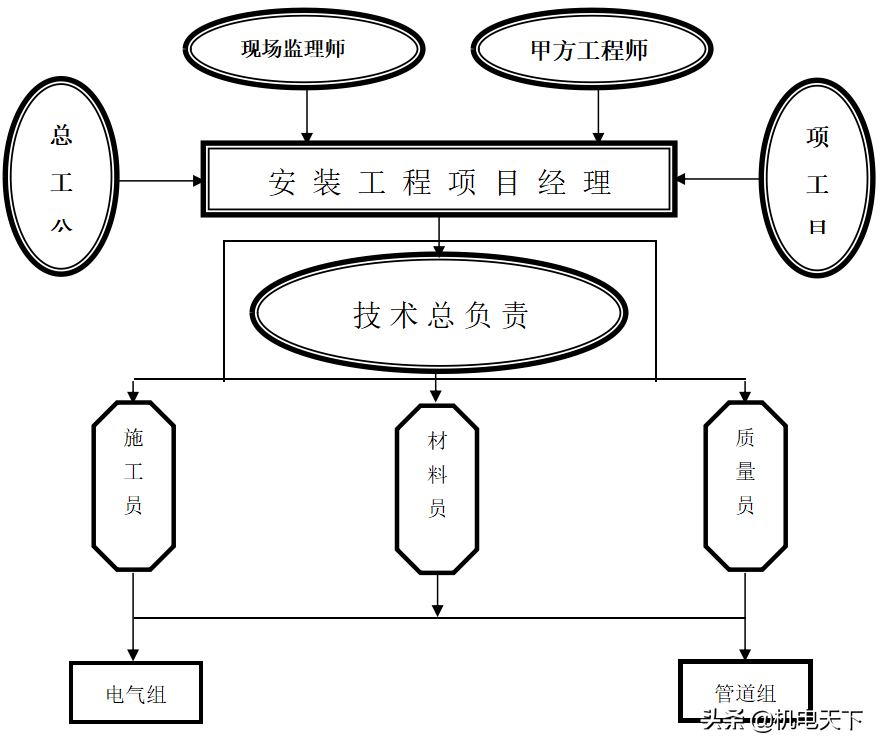 本工程包括所有给排水、暖通、电气及消防等工程安装及调试任务,并在总包规定的时间内完成,任务十分艰巨、紧迫,要求我们除了做好充分的物资、机具、人力准备外,还必须配备好强有力的项目管理班子,做好施工过程中的组织、协调、管理、技术工作。根据工程的具体情况划分合理施工区域,使整个安装工程全面展开,保证在规定的工期内完成安装、调试及试运行。