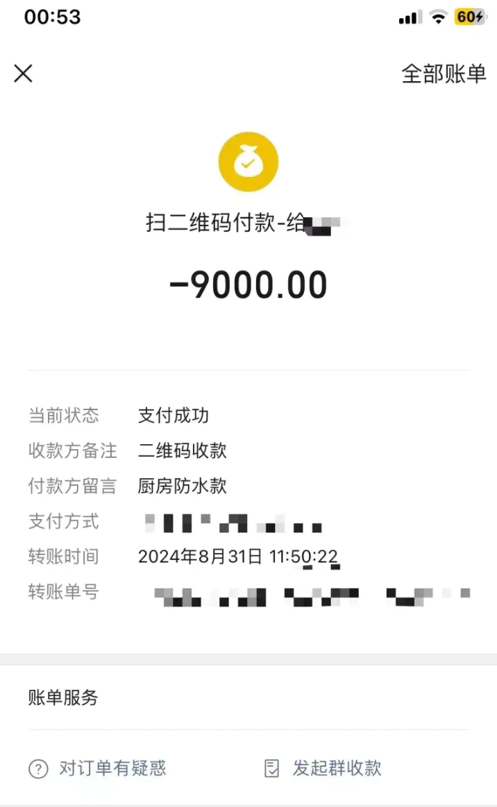 “我们同意后,维修人员却在修补间隙说,管道下面很深的地方还有其他漏洞要补,要用更多胶水。修完后,维修人员报价9000元。”李女士说,这个价格已经严重超出她的认知,即使把管道重新换新,也不见得要花这么多钱。在现场,她对价格表达了异议,但对方仍然坚持这个价格,并让她将钱直接通过扫码支付给某个个人微信收款码。