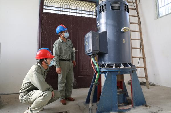 潜江供电公司工作人员对泵房设备进行调试、检查