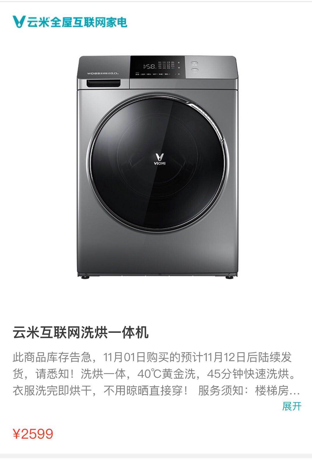 云米互联网家电双十一8KG洗烘一体机促销价你关注了吗