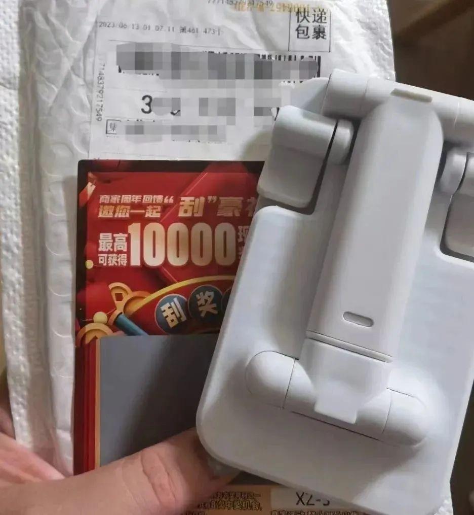 近日,家住上海市金山区的市民孙女士就收到了这样一个陌生快递,快递盒内有一个手机支架, 一份落款为“某宝联盟”的邀请函,和一张带有二维码的刮奖券。