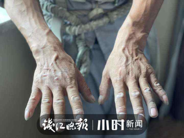 8月20日,杨建国一位同事被电流电伤了,手上还留下了烧焦的伤痕。