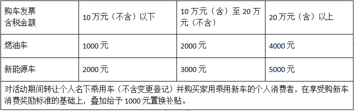 对将在本市登记注册的非营运性质国四及以下排放标准车辆报废,并在本市购置和上牌新能源汽车的单位和个人,给予小型车2000元/辆,中型车5000元/辆,大型车8000元/辆的置换奖励。