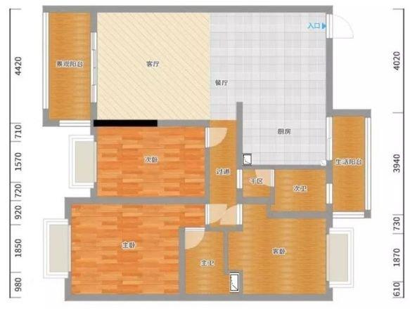 三口之家全包10万元主营造温馨、舒适的家。平面户型图
