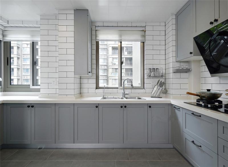 在厨房装饰过程中,选择白色会比选择黑色更显空间大。厨房整体颜色都应以浅色系为主,且尽量选择颜色单一的色块搭配,切勿花花绿绿。同时,也要避免使用立体感太强或是明暗对比强烈的材料,可以有效减少在视觉上给人产生的拥挤感。