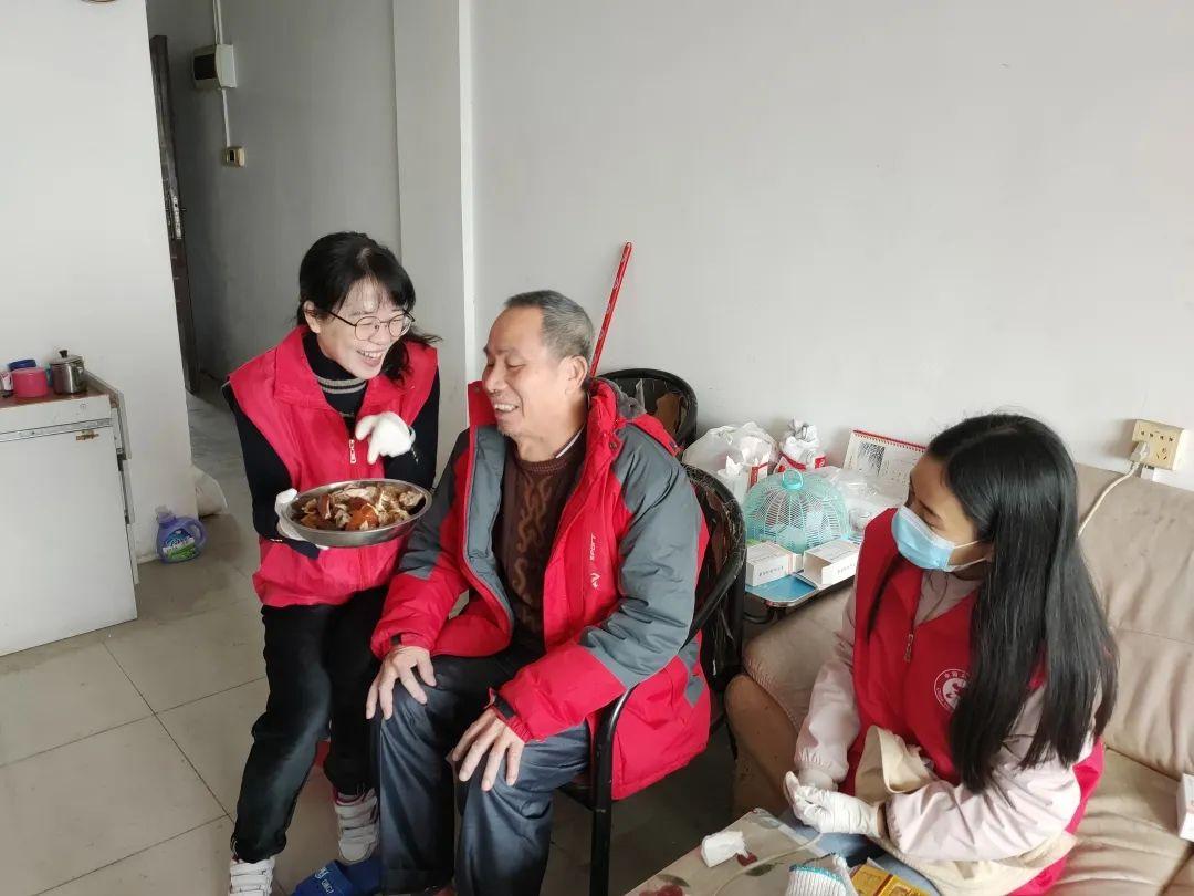 △端州区睦岗街道龙塘社区志愿者为独居老人做家居保洁,拉家常谈笑风生。