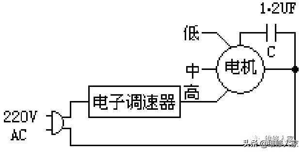 在市场上购一只电子无级调速器串联在电扇电路中,在电扇面板上开一小孔, 把电子调速器安上即可。改装后的电路图见附图。