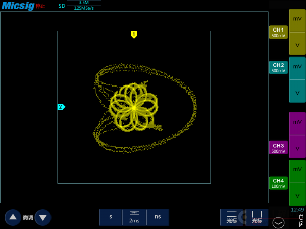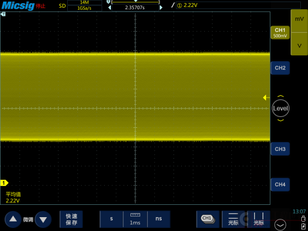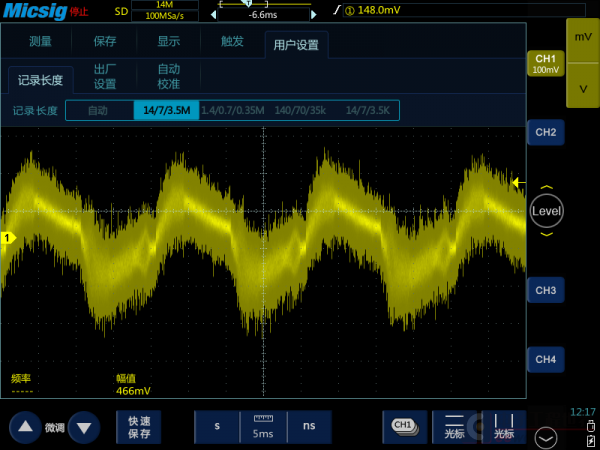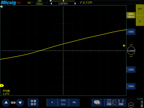 保存波形后时基从1ms展开到2ns之后细节依然可见,深存储还是很有用的