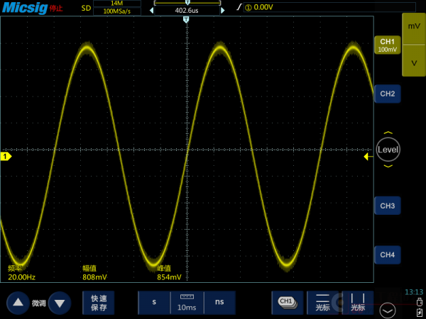 测个20HZ正弦,数字荧光看着效果比示波表看着好多了