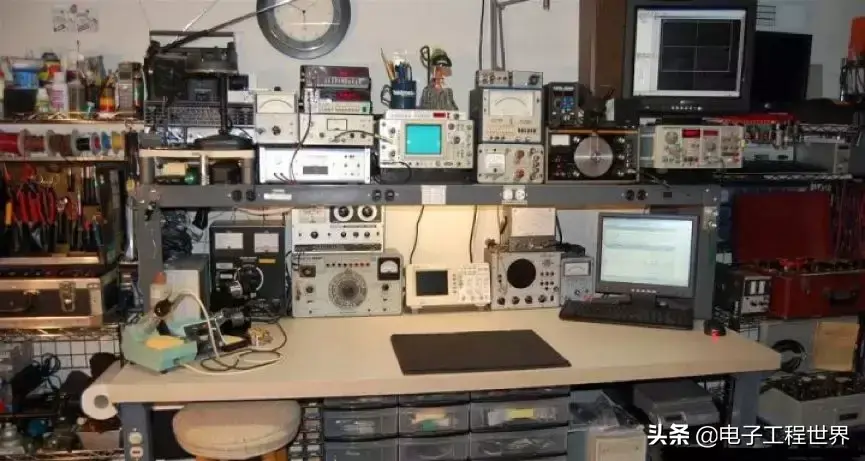 Dave Jones 拆解工作室一角,据说工作室里有上百台仪器,其中一部分来自全世界不同地区的粉丝邮寄赠送。