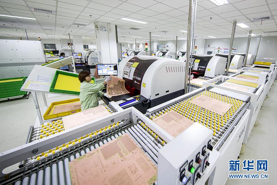 图为沪士电子生产车间内一片繁忙。新华网发