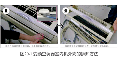 图20-1为变频空调器室内机外壳的拆卸方法。