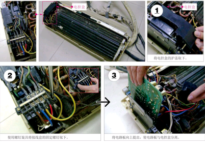 变频空调器室外机的拆卸方法与定频空调器室外机的拆卸基本相同。不同的是,变频空调器室外机中多-块变频电路板,因此拆卸变频空调器,除拆卸外壳等部分外,还需要针对变频电路部分进行拆卸。