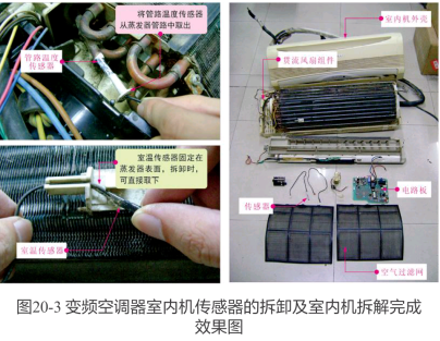 图20-3为空调器室内机传感器的拆卸及室内机拆解完成效果图。