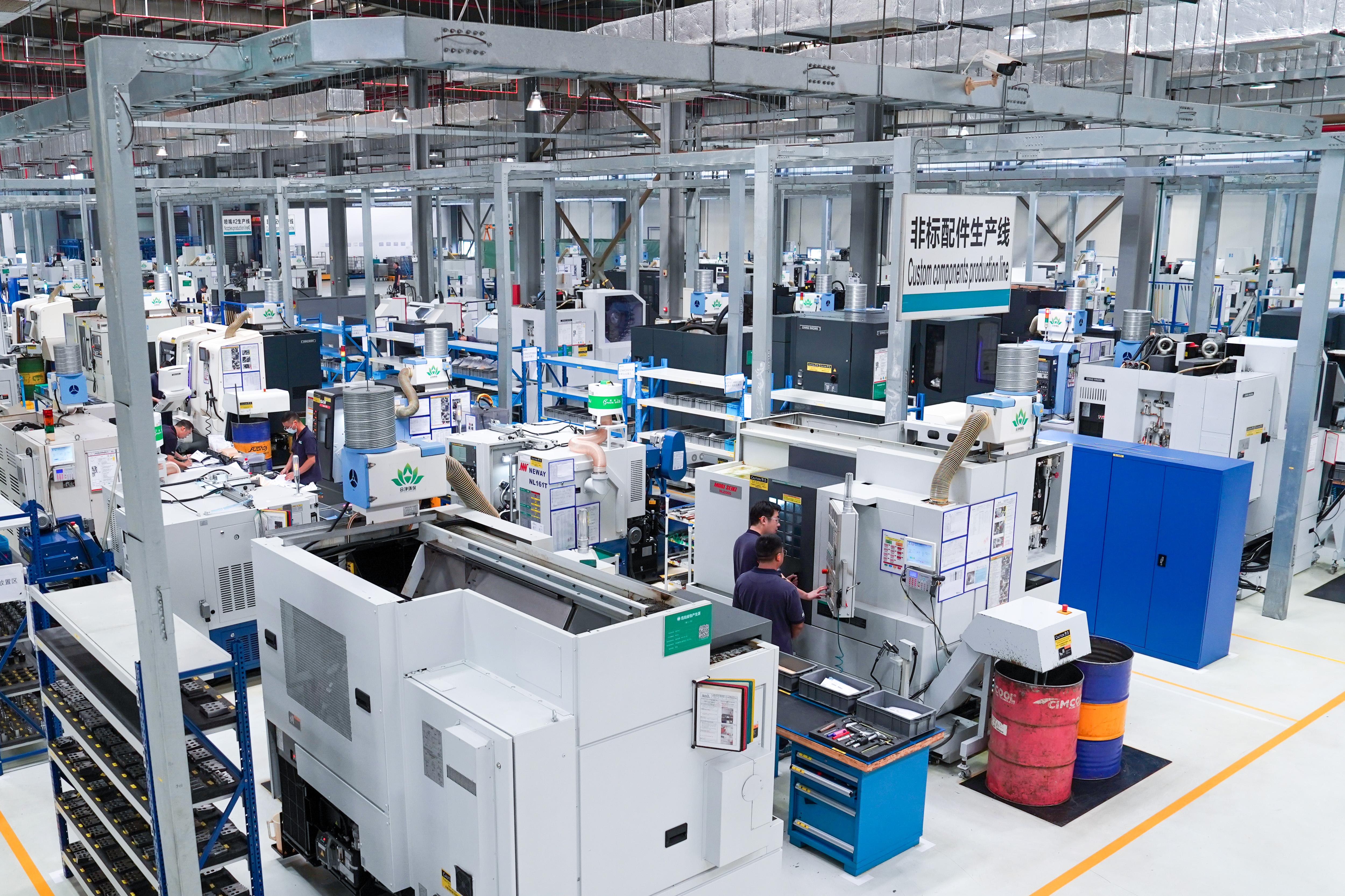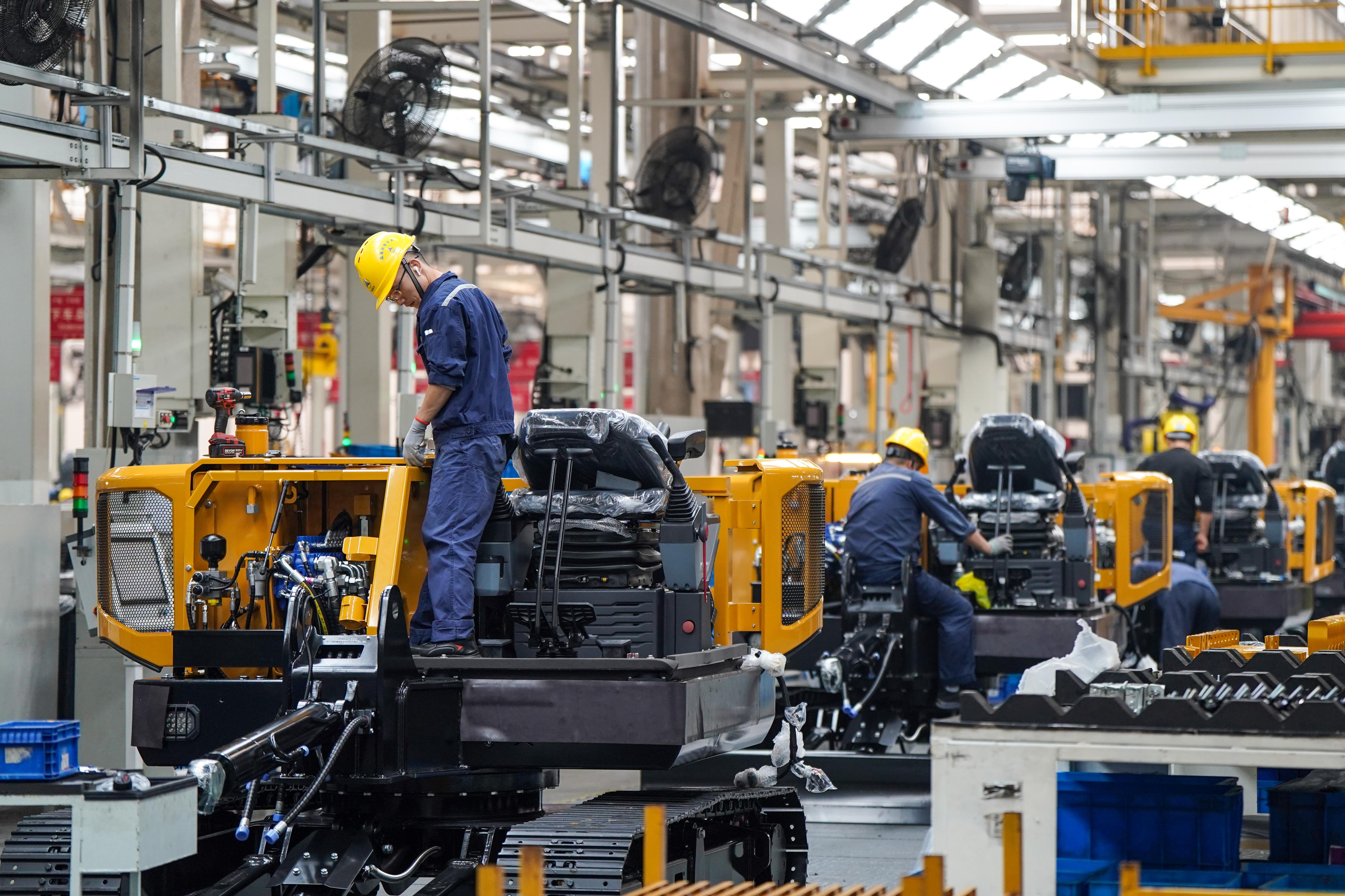 10月10日,工人在位于昆山的三一重机微挖智能工厂内作业。 新华社记者 李博 摄